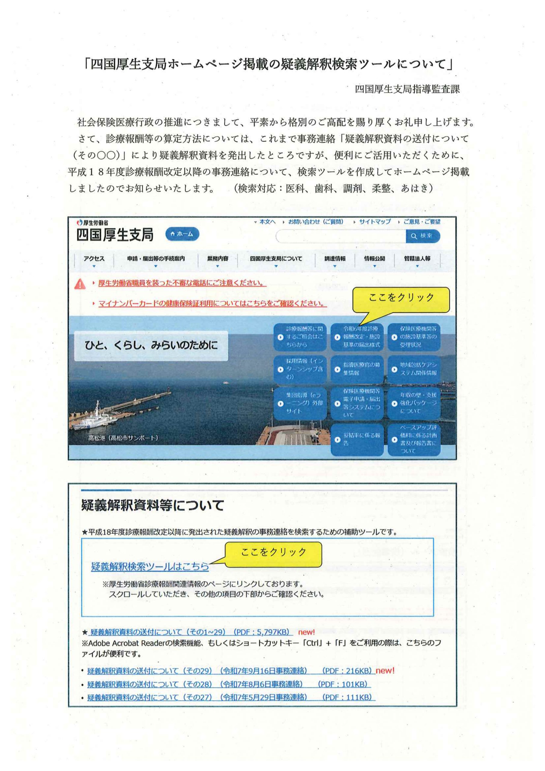 四国厚生支局ホームページ掲載の疑義解釈検索ツールについて