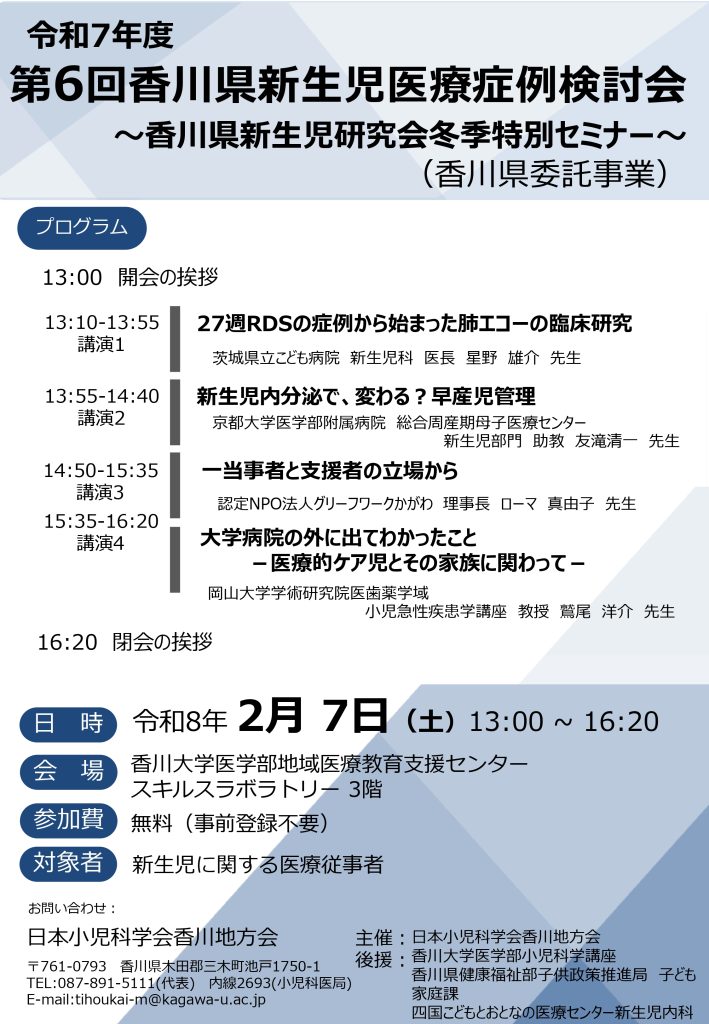 【お知らせ】令和7年度 第6回香川県新生児医療症例検討会 〜香川県新生児研究会冬季特別セミナー〜について